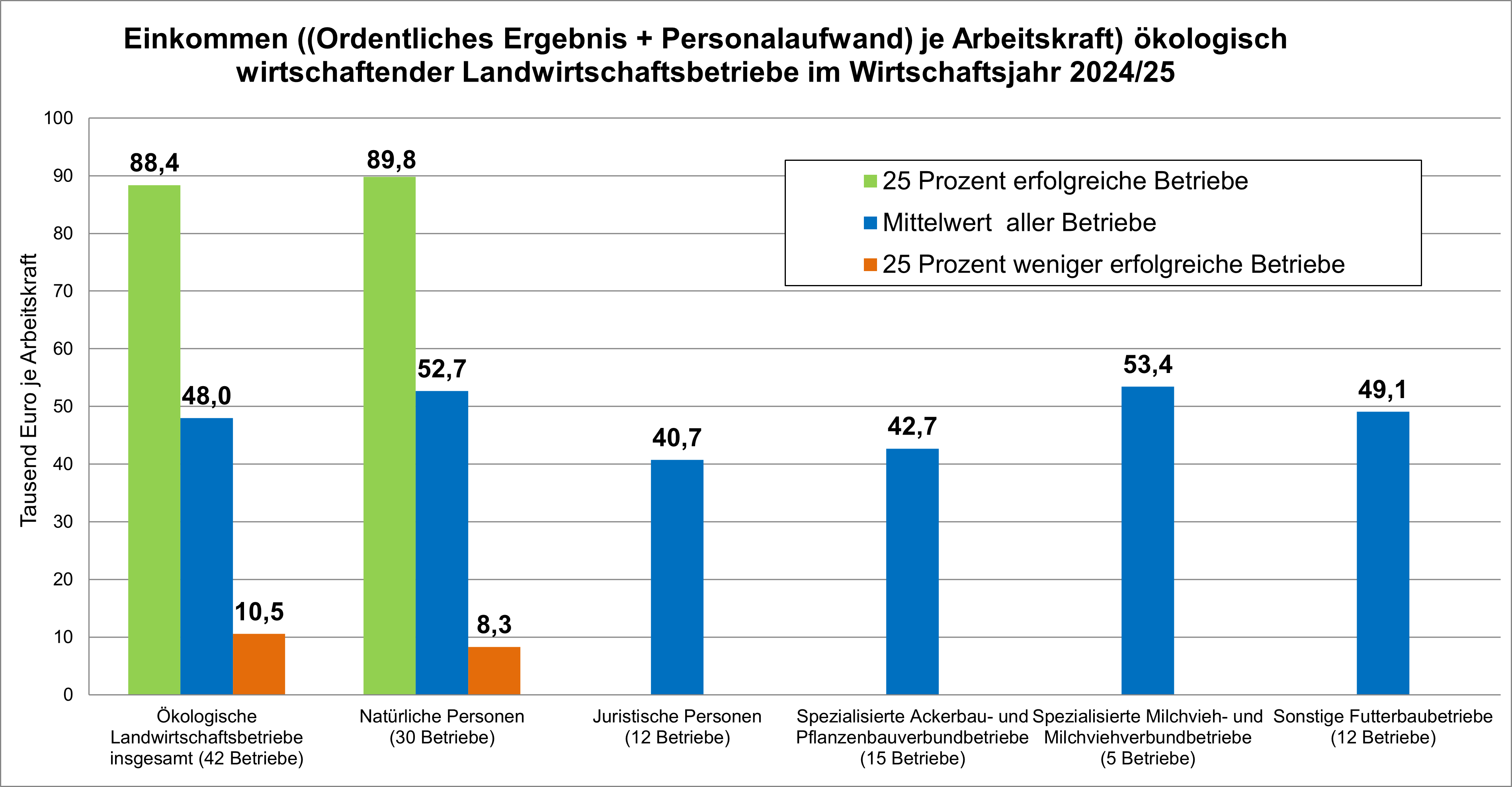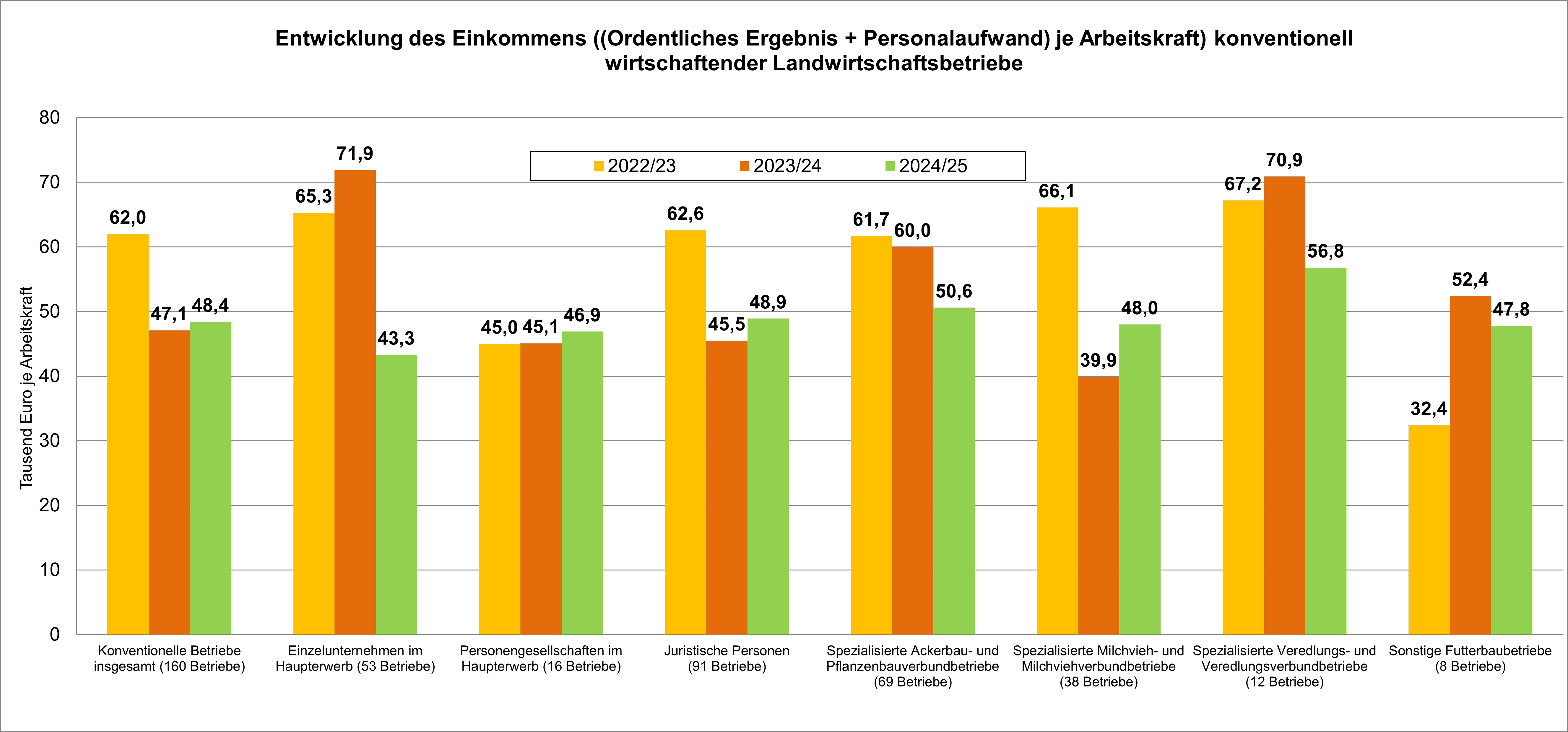 1) Einkommen je Arbeitskraft = (Ordentliches Ergebnis + Personalaufwand) je Arbeitskraft in Euro/Arbeitskraft (€/AK)