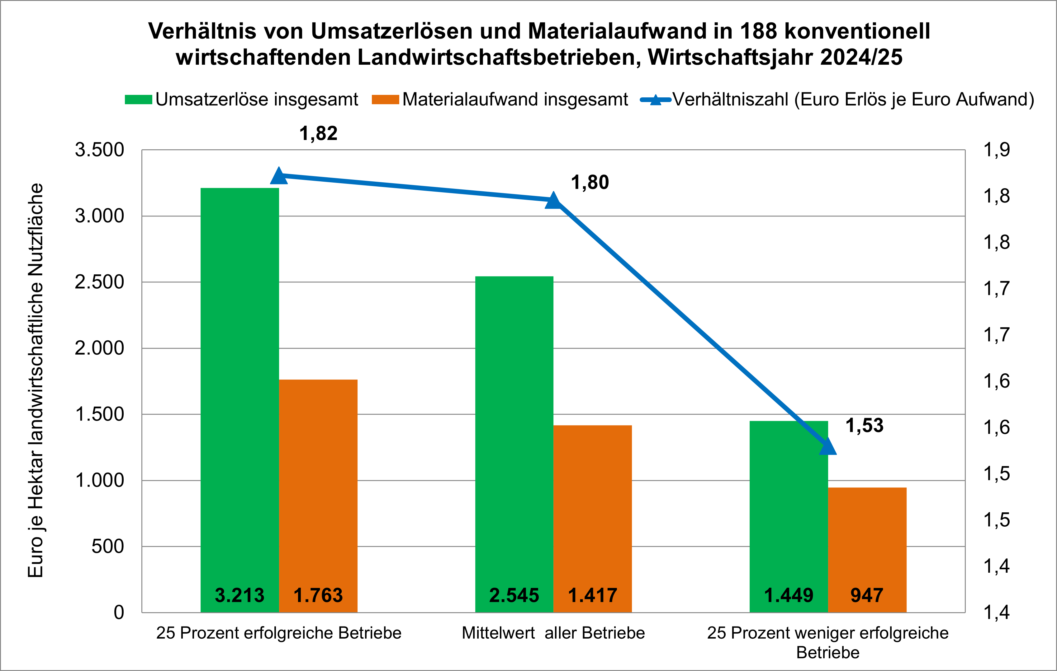 | Materialaufwand insgesamt | Euro je Hektar LF | 1.763 | 1.417 | 947 |